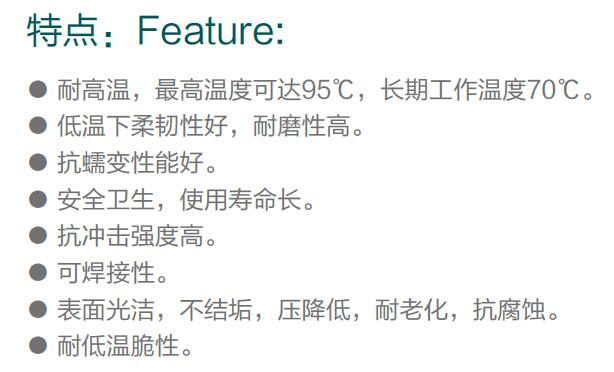 PE-RT(阻氧)地暖管材内层所用原料为韩国进口SK聚乙烯、外阻氧层采用日本EVAL,该原料具有独特的分子结构,它以线性乙烯为主链,加上可控分支,从而具有良好的耐水压性能。长期的耐水压测试证实此产品的寿命在110℃和2MPa环应力的条件下远超过一年。能阻隔氧气渗入管道系统,从而防止供暖系统内的金属部分腐蚀生锈,大大延长整个供暖系统中金属阀门、开关、锅炉、分集水器等金属件的使用寿命。如果阻氧管使用在自来水方面,即使水长期不流动也不会因氧化而变质、同时靠氧生存的细菌也无法滋生,全面保护系统内金属部分不被腐蚀生锈,延长整个设备系统的使用寿命。